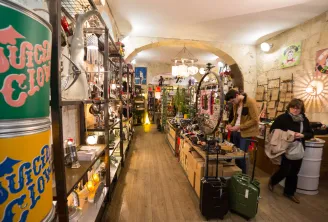 Un verdadero gabinete de curiosidades, esta tienda te lleva a un universo de fantasía y atemporal. Jean-Pierre y Dominique han estado llenando este lugar con todo tipo de hallazgos durante casi treinta años: entusiastas de la taxidermia, hay cabezas de zorro anidadas entre dos sombreros.